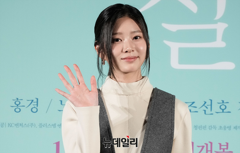배우 김민주가 18일 오전 서울 성동구 메가박스 성수점에서 열린 영화 '청설(조선호 감독)' 제작보고회에서 포즈를 취하고 있다.