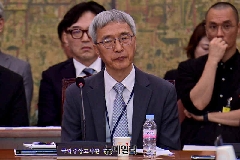 김희섭 국립중앙도서관장이 18일 국회에서 열린 문화체육관광위원회의 국립중앙박물관 등 국정감사에 증인으로 출석해 앉아 있다.