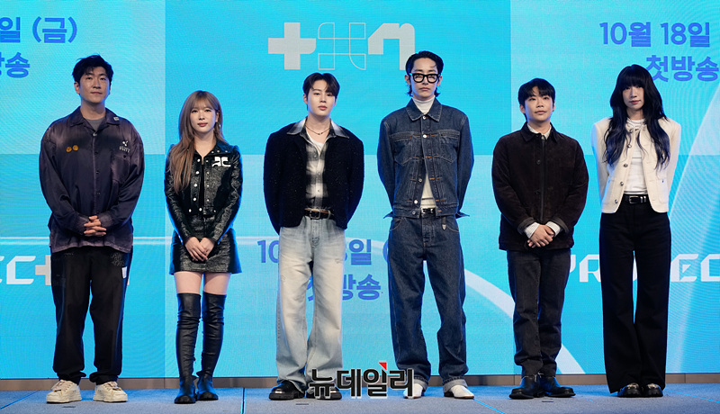 디렉터 라이언 전, 이해인, 하성운, MC 이수혁, 류디, 바다가 18일 오후 서울 여의도 페어몬트 앰베서더 호텔에서 열린 JTBC 예능 '프로젝트 세븐(PROJECT 7)' 제작발표회에서 포즈를 취하고 있다.예능 '프로젝트 세븐'은 시청자가 투표로만 참여하는 관찰자 시점에서 벗어나 첫 라운드부터 매 라운드 별로 직접 참가자를 선택, 새로운 팀을 구성하고 그 과정을 통해 자신의 최애 참가자를 성장시켜 나간다는 '조립, 강화'의 개념을 도입한 차별화된 신개념 아이돌 오디션 프로그램이다. 18일 오후 8시 50분 첫 방송.