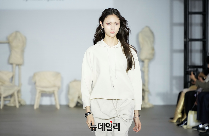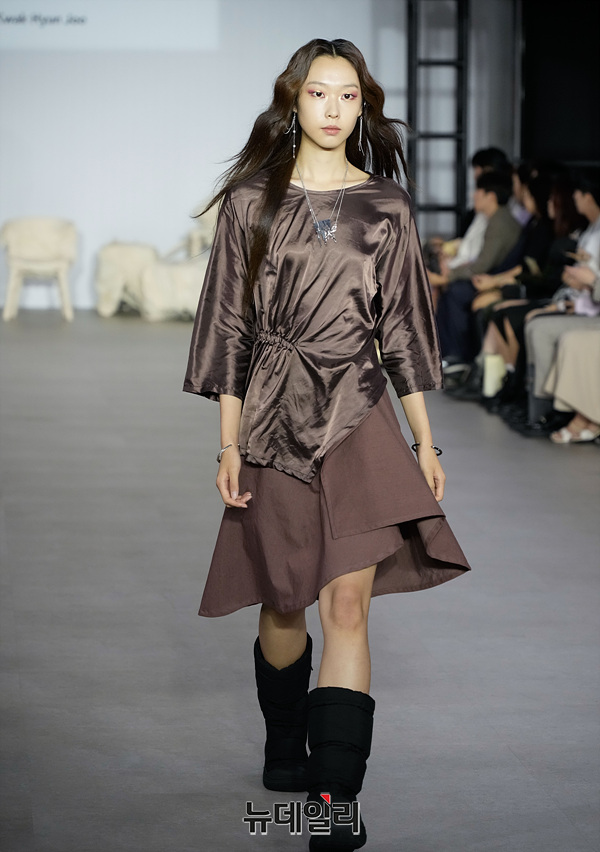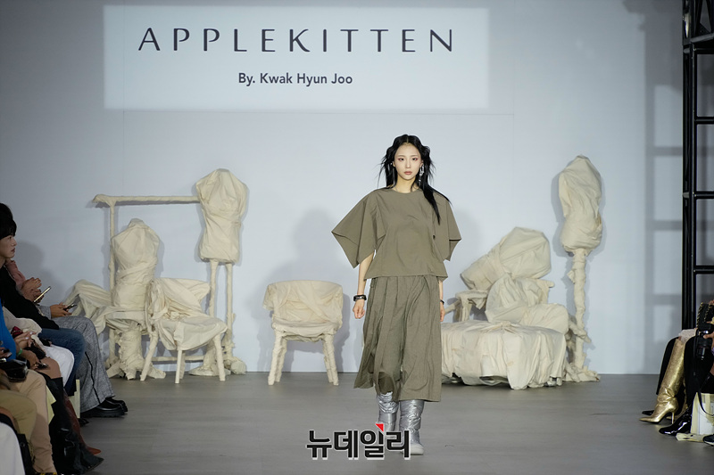 곽현주 디자이너의 패션브랜드 '애플키튼(APPLE KITTEN)' 런웨이가 18일 오후 서울 강남구 코엑스에서 열린 '패션코드 2025 S/S'에서 진행되고 있다.