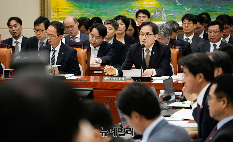 한기정 공정거래위원회 위원장이 21일 오전 서울 여의도 국회에서 열린 국회 정무위원회의 공정거래위원회, 한국소비자원, 한국공정거래조정원에 대한 국정감사에서 의원들의 질의에 답하고 있다.
