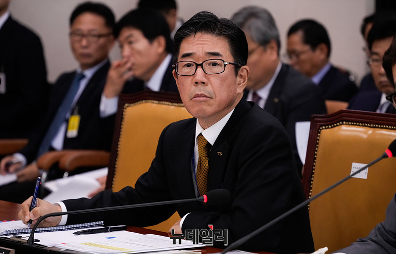 정용식 교통안전공단 이사장이 21일 오전 서울 여의도 국회에서 열린 국회 국토교통위원회의 한국도로공사 등에 대한 국정감사에서 의원들의 질의를 듣고 있다.
