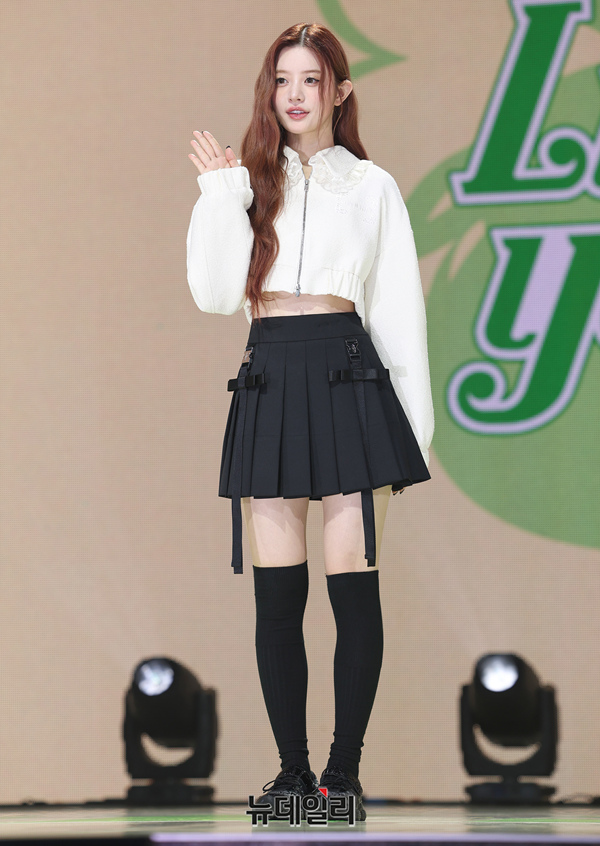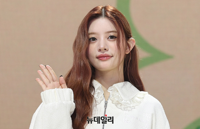 걸그룹 아일릿(ILLIT) 민주가 21일 오후 서울 광진구 예스24라이브홀에서 열린 미니 2집 'I'LL LIKE YOU(아일 라이크 유)' 쇼케이스에서 포즈를 취하고 있다.