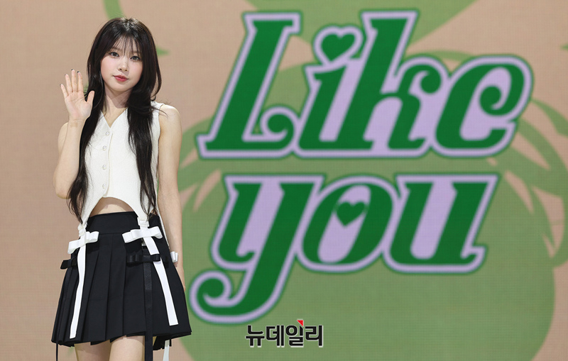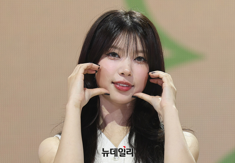 걸그룹 아일릿(ILLIT) 모카가 21일 오후 서울 광진구 예스24라이브홀에서 열린 미니 2집 'I'LL LIKE YOU(아일 라이크 유)' 쇼케이스에서 포즈를 취하고 있다.