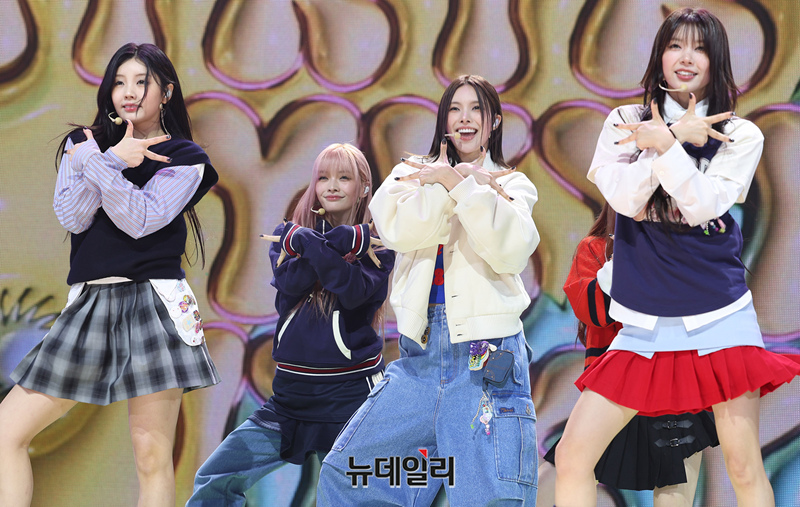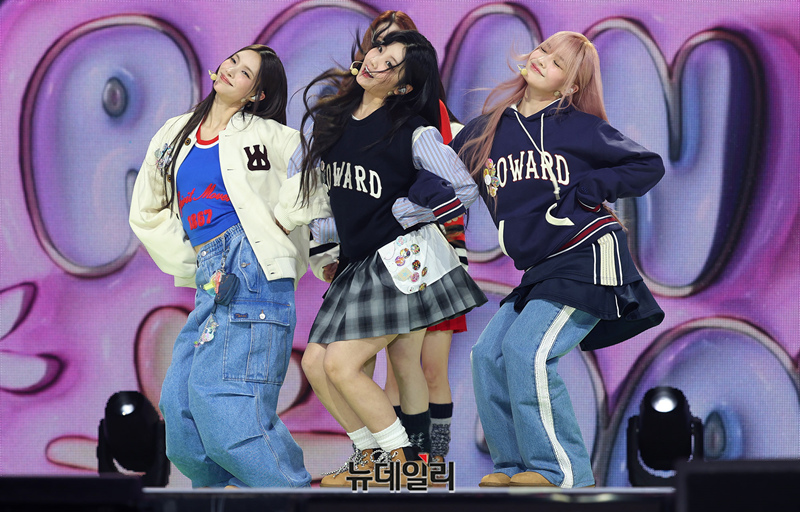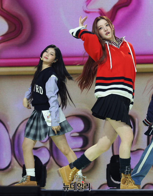 걸그룹 아일릿(ILLIT)이 21일 오후 서울 광진구 예스24라이브홀에서 열린 미니 2집 'I'LL LIKE YOU(아일 라이크 유)' 쇼케이스에서 수록곡 IYKYK 무대를 선보이고 있다.