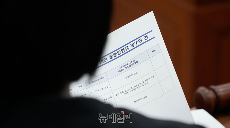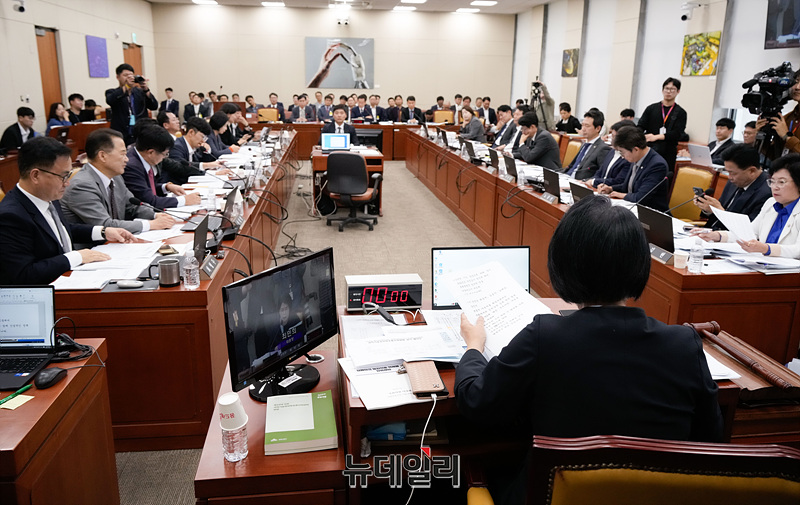 최민희 위원장이 21일 오후 서울 여의도 국회에서 열린 국회 과학기술방송통신위원회의 방송통신심의위원회에 대한 국정감사에서 동행명령장 발부의 건을 상정하고 있다.
