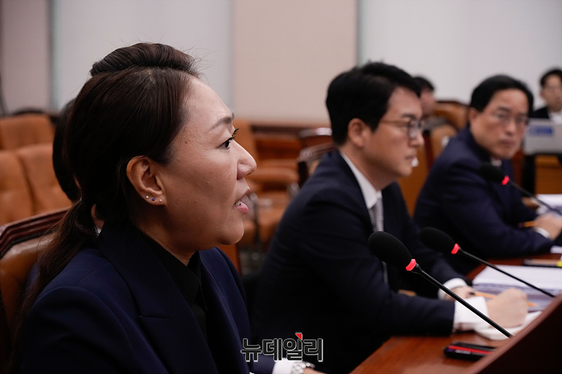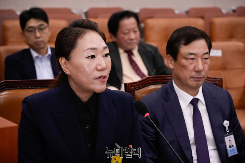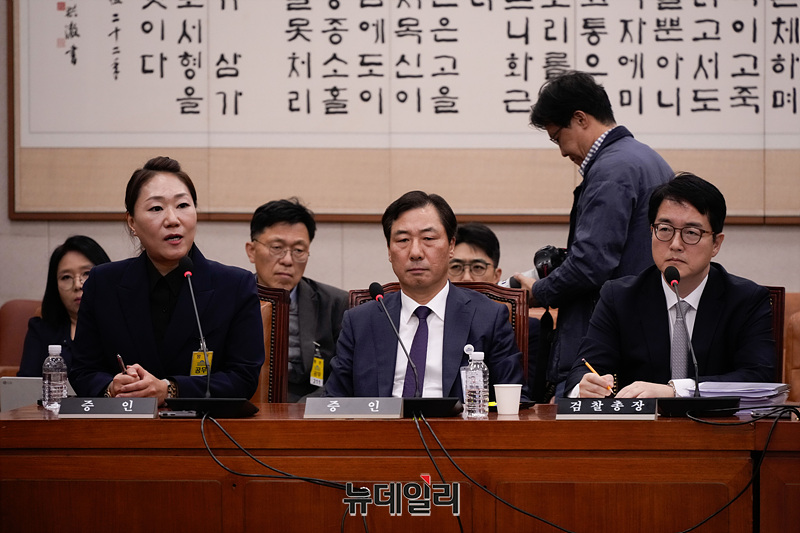 강혜경씨가 21일 오후 서울 여의도 국회에서 열린 국회 법제사법위원회의 대검찰청에 대한 국정감사에서 의원들의 질의에 답하고 있다.