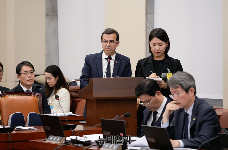 스테판 드블레즈 르노코리아 대표가 21일 오후 서울 여의도 국회에서 열린 국회 정무위원회의 공정거래위원회, 한국소비자원, 한국공정거래조정원에 대한 국정감사에서 의원들의 질의에 답하고 있다.