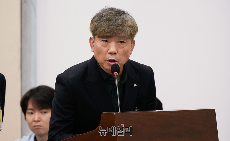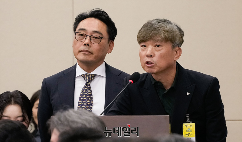 김정중 아디다스 전국점주협의회장이 21일 오후 서울 여의도 국회에서 열린 국회 정무위원회의 공정거래위원회, 한국소비자원, 한국공정거래조정원에 대한 국정감사에서 의원들의 질의에 답하고 있다.