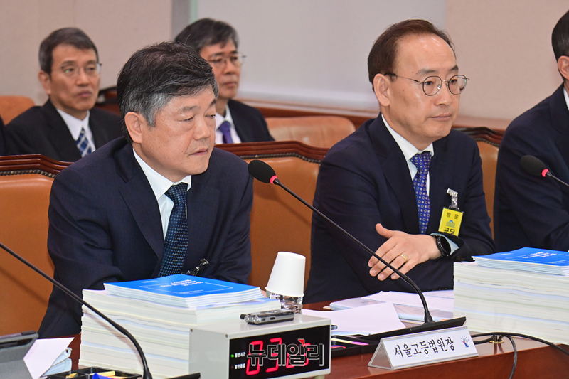 윤준 서울고등법원장이 22일 오후 국회에서 열린 법제사법위원회의 서울고등법원, 서울중앙지방법원 등에 대한 국정감사에서 의원 질문에 답하고 있다.