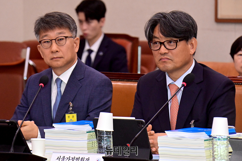 최호식 서울가정법원장이 22일 오후 국회에서 열린 법제사법위원회의 서울고등법원, 서울중앙지방법원 등에 대한 국정감사에서 의원 질문을 듣고 있다.