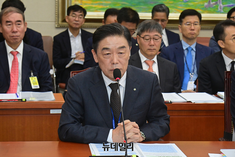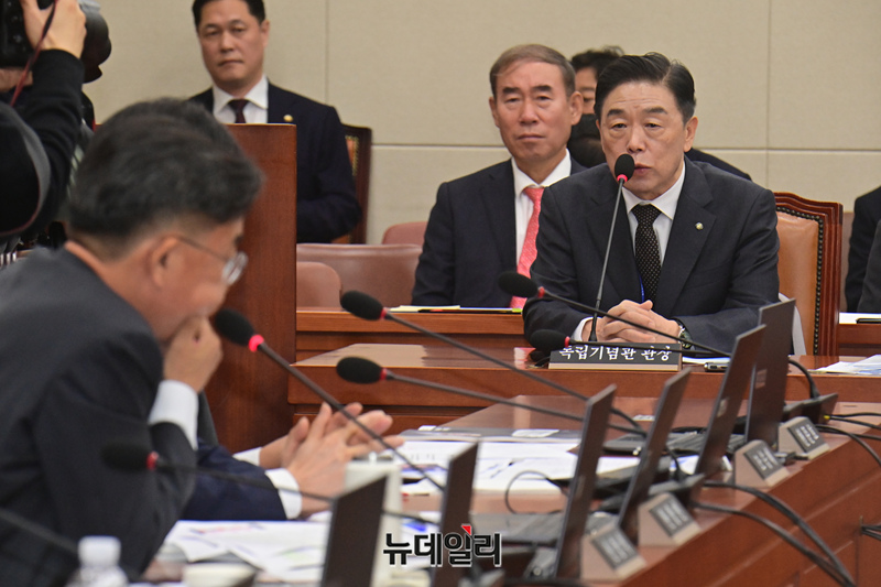 김형석 독립기념관장이 22일 국회에서 열린 정무위원회의 국가보훈부, 독립기념관 등의 대한 국정감사에서 의원 질의에 답하고 있다.