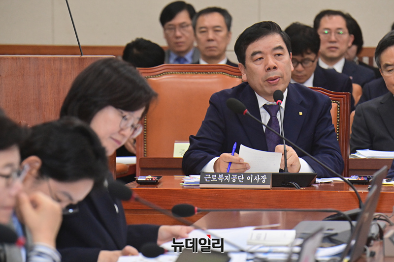 박종길 근로복지공단 이사장이 22일 오전 국회에서 열린 환경노동위원회의 근로복지공단, 한국산업인력공단 등에 대한 국정감사에서 의원 질의에 답하고 있다.