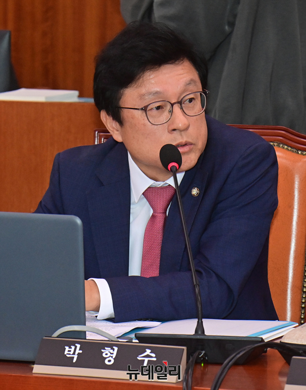 박형수 국민의힘 의원이 22일 오후 국회에서 열린 산업통상자원중소벤처기업위원회의 중소벤처기업진흥공단 등에 대한 국정감사에서 중기유통센터에 티메프 사태관련 질의를 하고 있다.이날 박 의원은 "중기유통센터는 온라인 쇼핑몰 판매 지원 사업, 이커머스 제작 지원 사업 등을 합치면 티몬에 36억 6200만원, 위메프에 42억 9500만원 등 총 80억원 정도를 지원했다"며 "실질적인 재무상태를 파악하려면 유동비율이나 단기 상환 가능한 현금 비율을 봐야 하는데 이를 제대로 따지지 않았다는 점에서 근본적인 책임이 있다"고 발언했다.