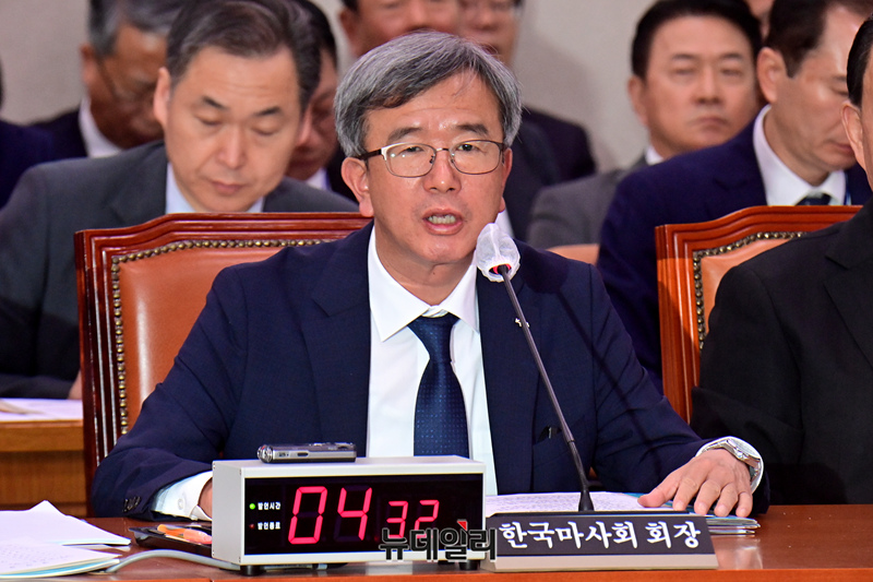 정기환 한국마사회 회장이 22일 오전 국회 농림축산식품해양수산위원회에서 열린 한국농수산식품유통공사·한국농어촌공사·한국마사회 등 국정감사에 출석해 의원 질의에 답하고 있다.