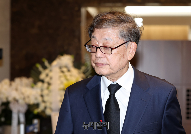 김황식 이승만대통령기념재단 이사장이 23일 오후 서울 송파구 서울아산병원 장례식장에 마련된 이상득 전 국회의원 빈소를 찾아 조문을 마치고 이동하고 있다.