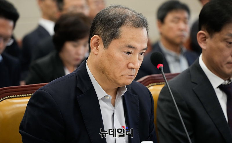 일 오전 서울 여의도 국회에서 열린 국회 과학기술정보방송통신위원회의 방송통신위원회 등에 대한 종합감사에서 자료화면을 응시하고 있다.