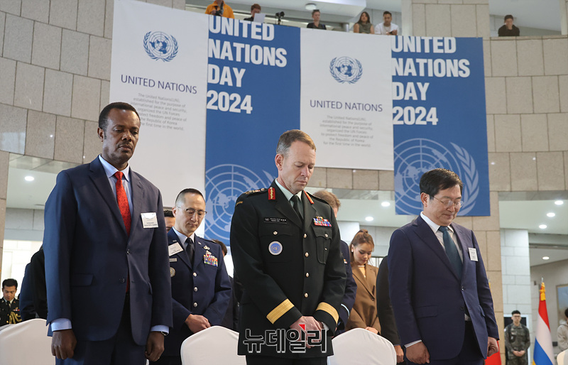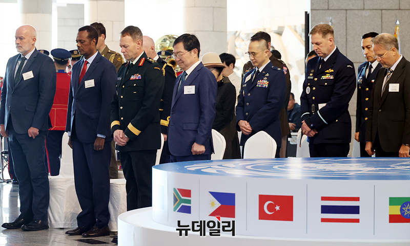 [포토] 묵념하는 '2024 유엔참전기념행사' 참석자들
