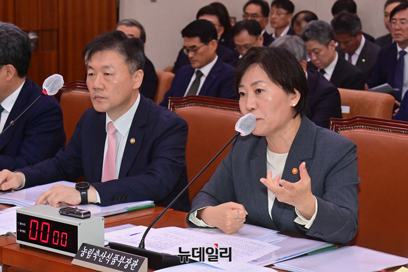 송미령 농림축산식품부 장관이 24일 오전 국회 농림축산식품해양수산위원회에서 열린 농림축산식품부 및 소관기관 종합 국정감사에 출석해 의원 질의에 답하고 있다.