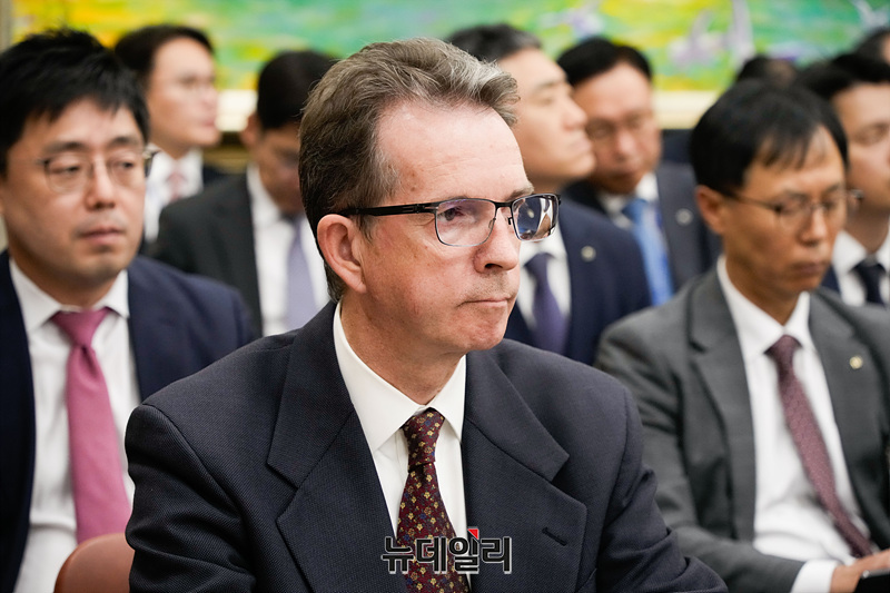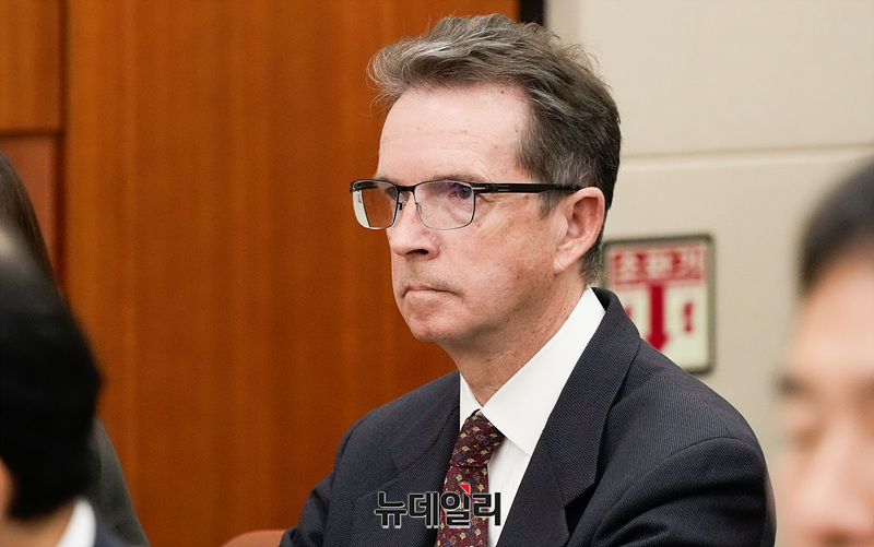 피터 알덴우드 애플코리아 대표이사가 24일 오후 서울 여의도 국회에서 열린 국회 정무위원회의 금융위원회 등에 대한 종합감사에 출석해 자리하고 있다.