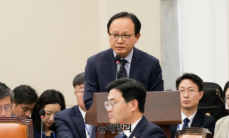 등에 대한 종합감사에서 의원들의 질의에 답하고 있다.