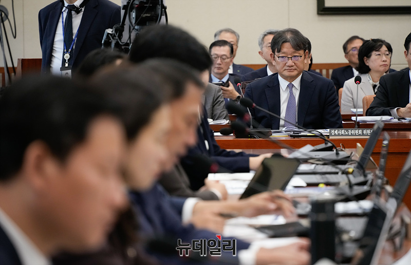 경제사회노동위원회 등에 대한 종합감사에 출석해 의원들의 질의를 듣고 있다.