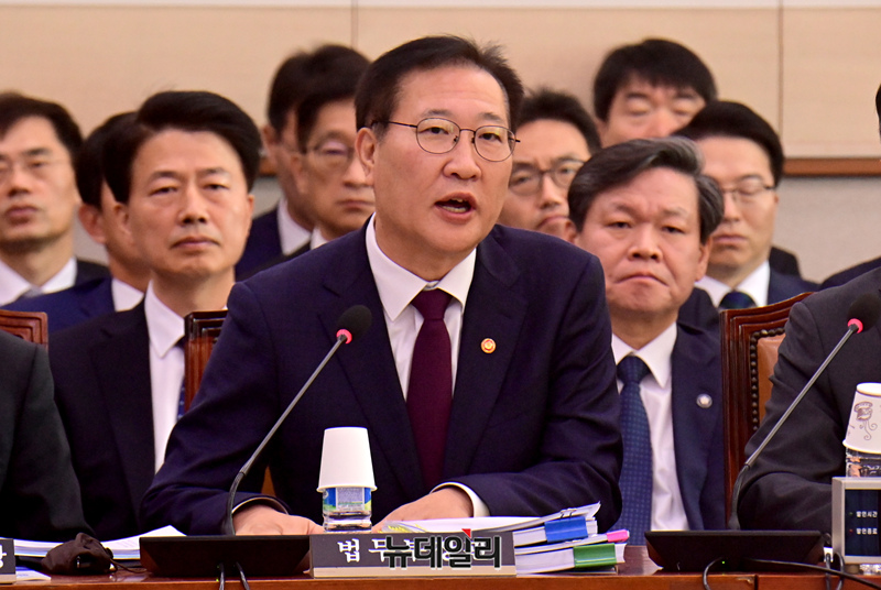 박성재 법무부장관이 25일 오전 국회 법제사법위원회에서 열린 법무부·법제처·감사원·고위공직자범죄수사처·헌법재판소·대법원 종합 국정감사에서 의원들의 질문에 답하고 있다.