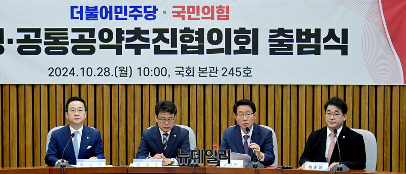 김상훈 국민의힘 정책위의장이 28일 국회에서 열린 더불어민주당-국민의힘 민생·공통공약추진협의회 출범식에서 모두발언을 하고있다.