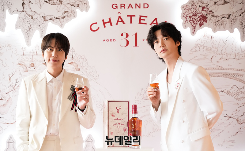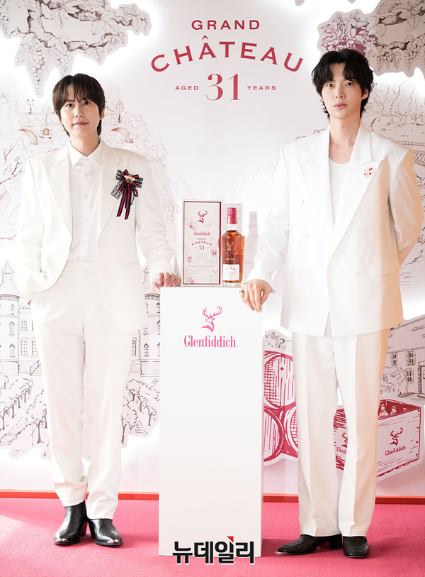 가수 규현과 배우 안재현이 29일 오전 서울 중구 신라호텔에서 열린 '글렌피딕 31년 그랑 샤또' 미디어 행사 포토월에서 포즈를 취하고 있다.