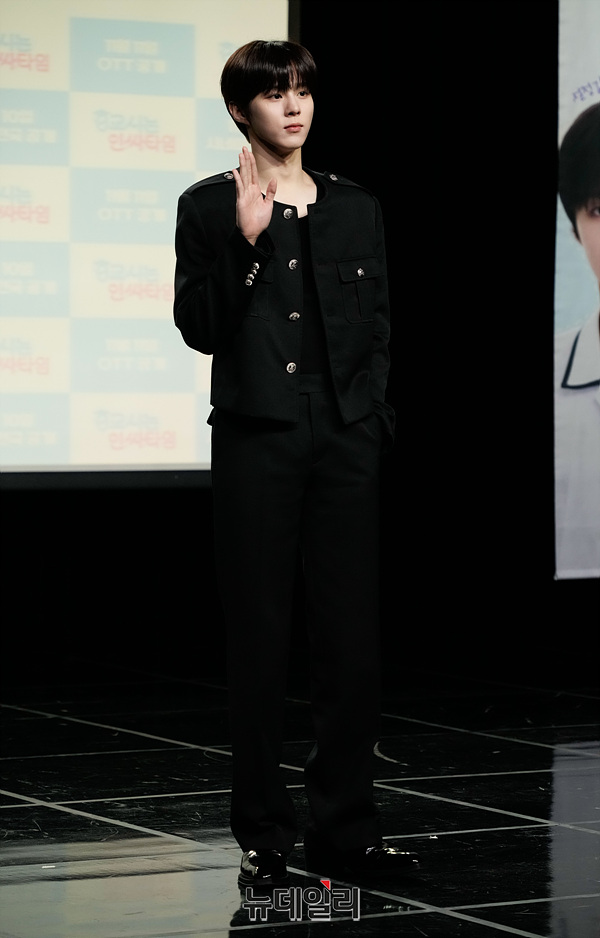 배우 김우석이 29일 오전 서울 강남구 일지아트홀에서 열린 웹드라마 '0교시는 인싸타임' 제작발표회에서 포즈를 취하고 있다.