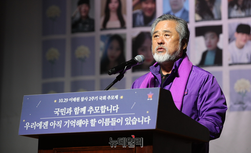 이정민 10·29 이태원 참사 유가족협의회 운영위원장이 29일 국회에서 열린 10·29 이태원참사 2주기 추모식에서 인사말을 하고 있다. (사진=공동취재)
