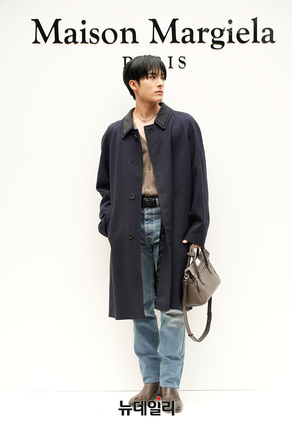 더보이즈 에릭이 29일 오후 서울 용산구에서 열린 국내 첫 플래그십 스토어 '메종 마르지엘라 한남 플래그십 부티크' 오픈 기념 포토월에서 포즈를 취하고 있다.