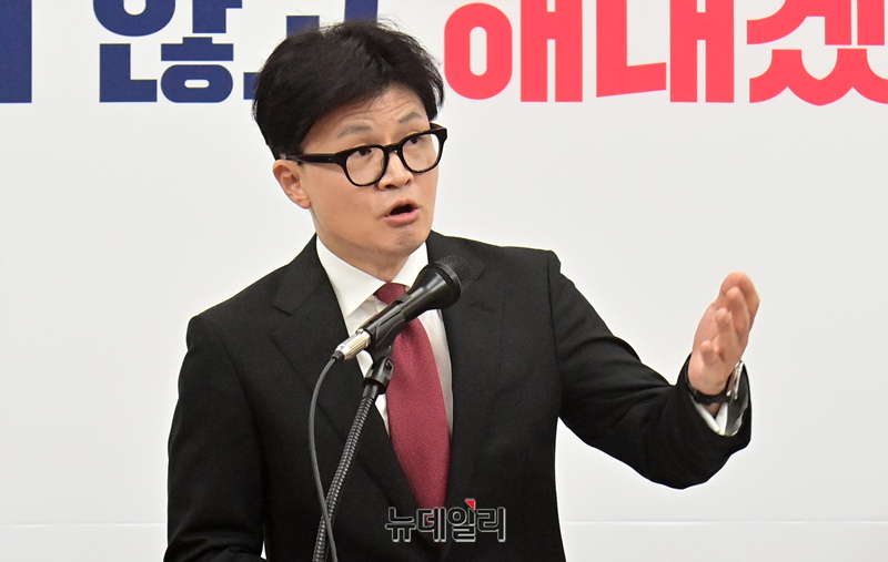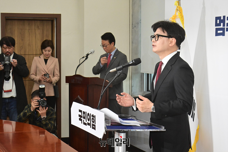 [포토] 취재진의 질문에 답하는 한동훈 국민의힘 대표