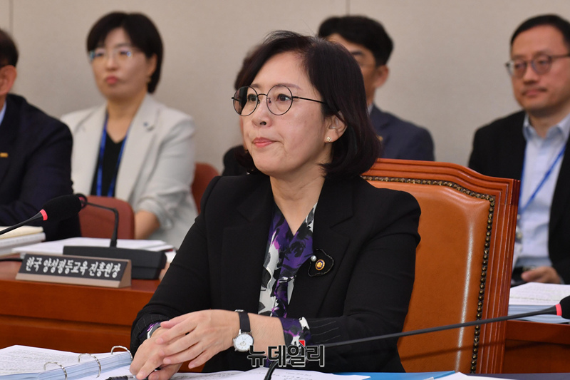 신영숙 여성가족부 장관 직무대행이 30일 오전 국회 여성가족위원회에서 열린 여성가족부·한국양성평등교육진흥원·한국청소년활동진흥원 등에 대한 종합 국정감사에서 의원들의 질문에 답하고 있다.