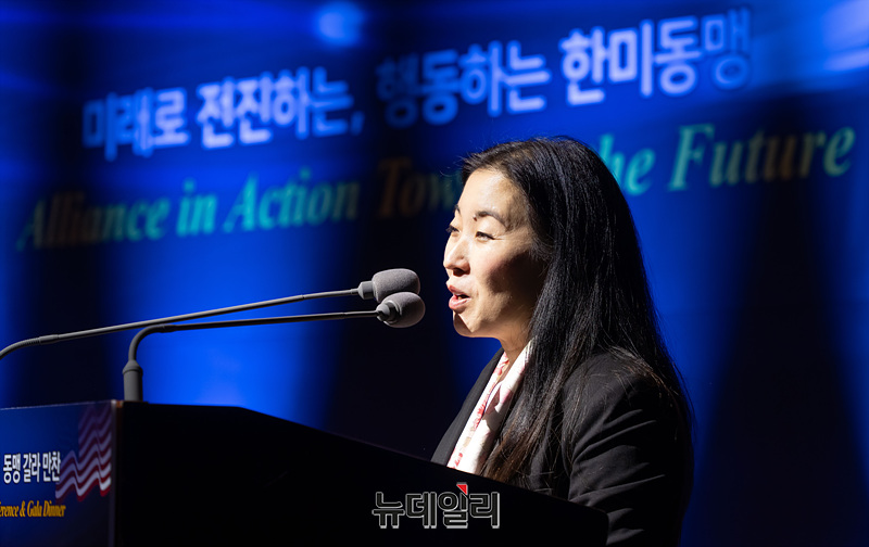 조이 사쿠라이 주한 대사관 미국 부대사가 30일 오후 서울 중구 웨스틴조선호텔에서 열린 '한미동맹 컨퍼런스'에서 축사를 하고 있다.