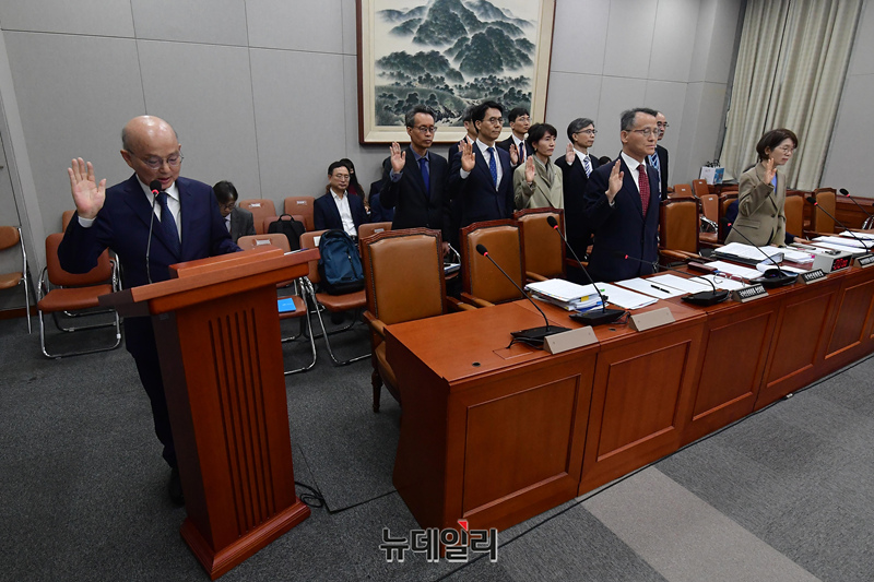 안창호 국가인권위원장이 31일 국회에서 열린 국회운영위원회의 국가인권위원회 등 국정감사에서 증인선서를 하고 있다.