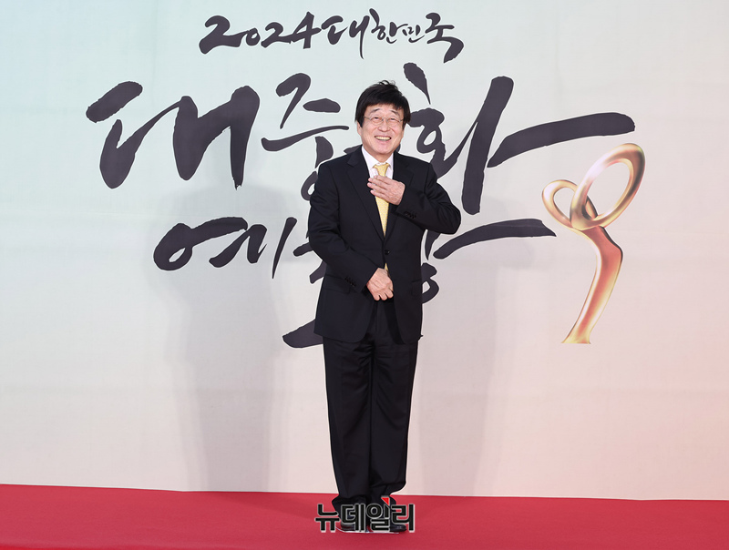 가수 김창완이 31일 오후 서울 중구 국립극장 해오름극장에서 열린 '2024 대한민국 대중문화예술상 시상식' 레드카펫 행사에서 포즈를 취하고 있다.