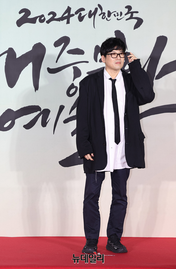 음악감독 김성수가 31일 오후 서울 중구 국립극장 해오름극장에서 열린 '2024 대한민국 대중문화예술상 시상식' 레드카펫 행사에서 포즈를 취하고 있다.