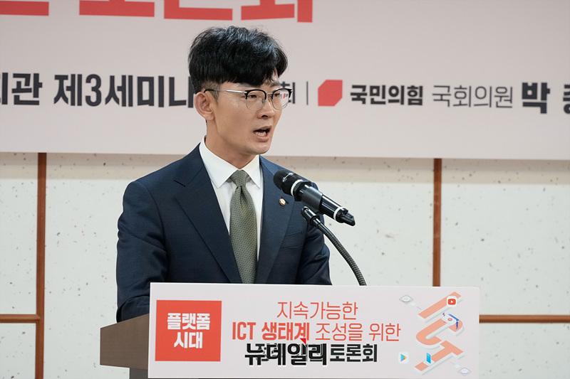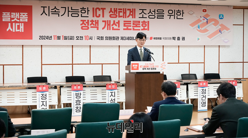 박충권 국민의힘 의원이 1일 오전 서울 여의도 국회 의원회관에서 열린 '지속가능한 ICT 생태계 조성을 위한 정책 개선 토론회'에서 인사말을 하고 있다.