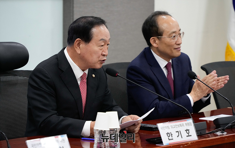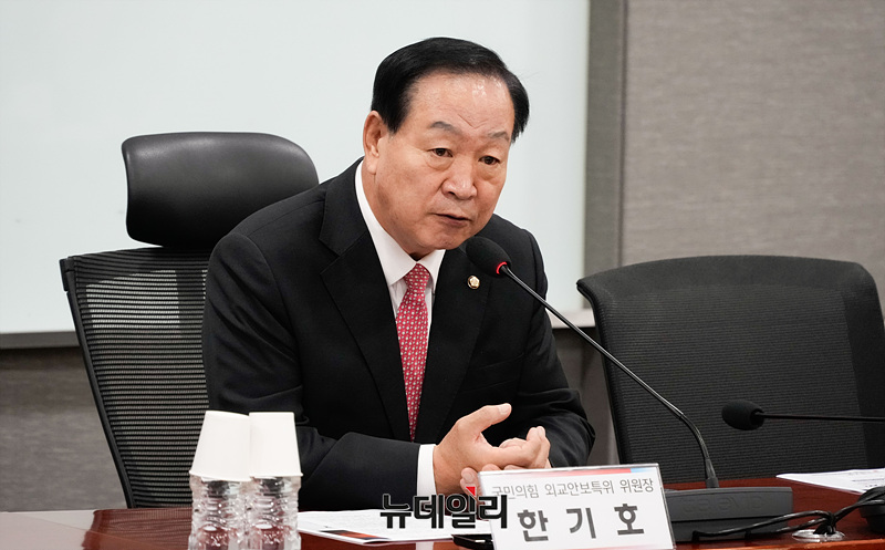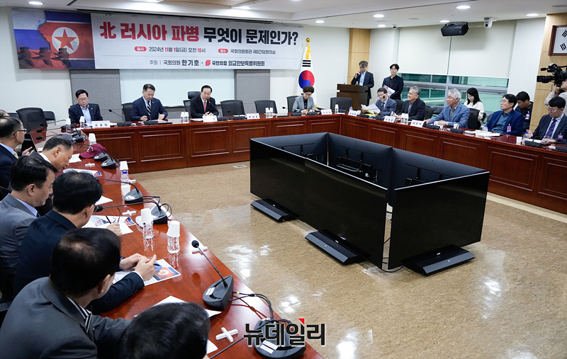 한기호 국민의힘 의원이 1일 오전 서울 여의도 국회에서 열린 '北 러시아 파병 무엇이 문제인가?' 토론회에서 인사말을 하고 있다.
