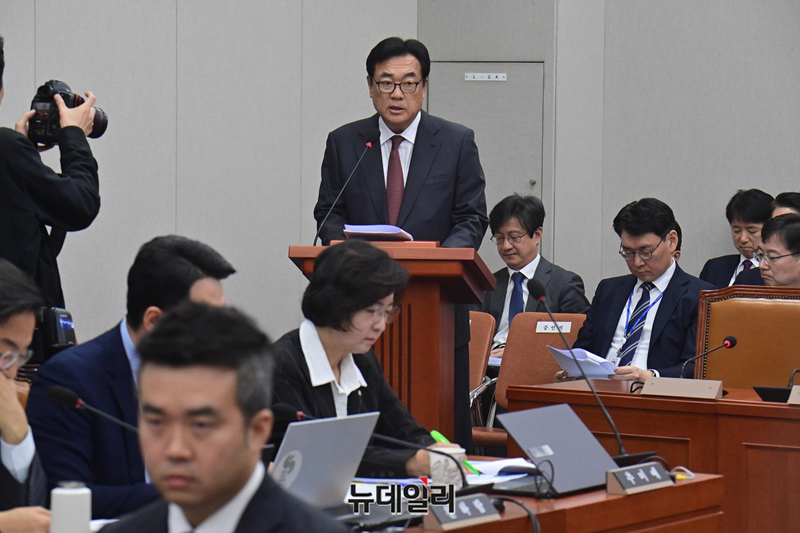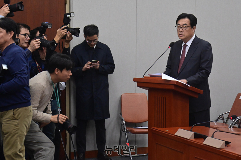 정진석 대통령실 비서실장이 1일 오전 국회에서 열린 운영위원회의 대통령비서실, 국가안보실, 대통령경호처 국정감사에서 인사말을 하고 있다.