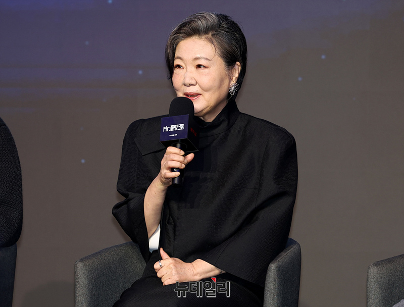 배우 김해숙이 4일 오전 서울 마포구 호텔 나루 서울에서 열린 넷플릭스 시리즈 'Mr. 플랑크톤(연출 홍종찬, 극본 조용)' 제작보고회에서 포즈를 취하고 있다.