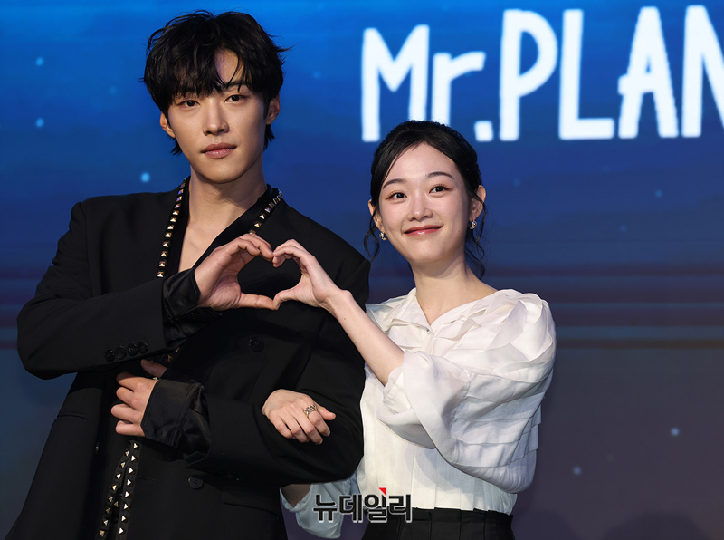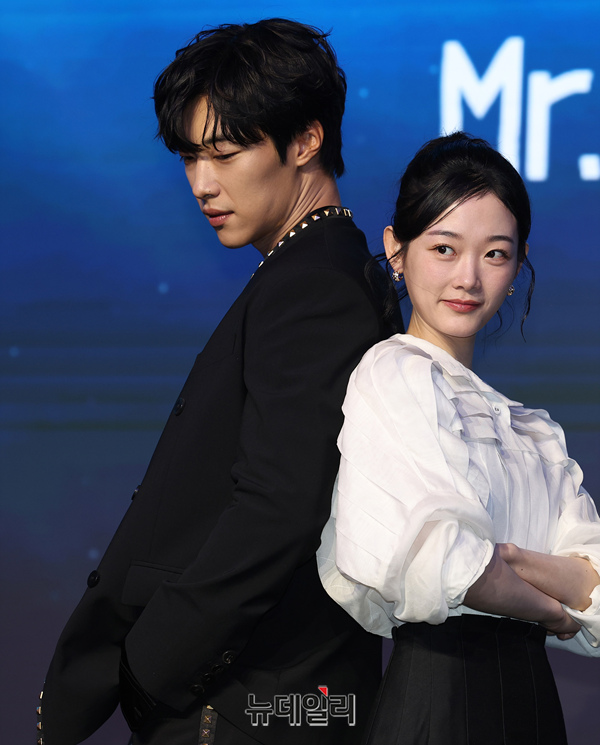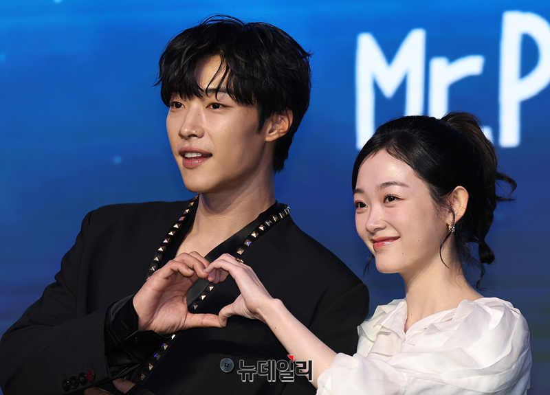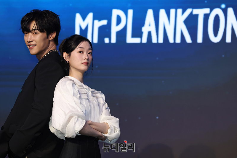 배우 우도환, 이유미가 4일 오전 서울 마포구 호텔 나루 서울에서 열린 넷플릭스 시리즈 'Mr. 플랑크톤(연출 홍종찬, 극본 조용)' 제작보고회에서 포즈를 취하고 있다.