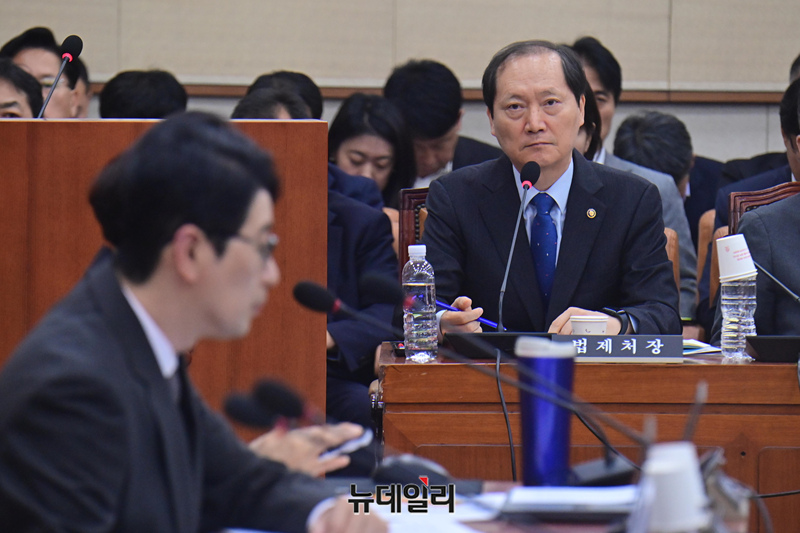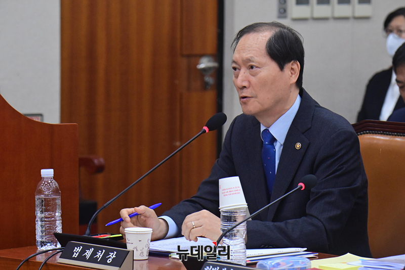 이완규 법제처장이 4일 오후 국회에서 열린 법제사법위원회 전체회의에서 의원들의 질문에 답하고 있다.