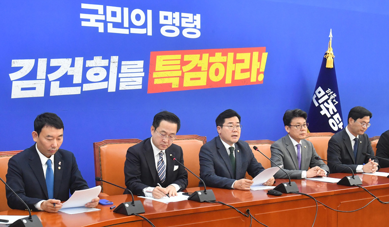 박찬대 더불어민주당 원내대표가 5일 오전 국회에서 열린 원내대책회의에서 모두발언을 하고 있다.