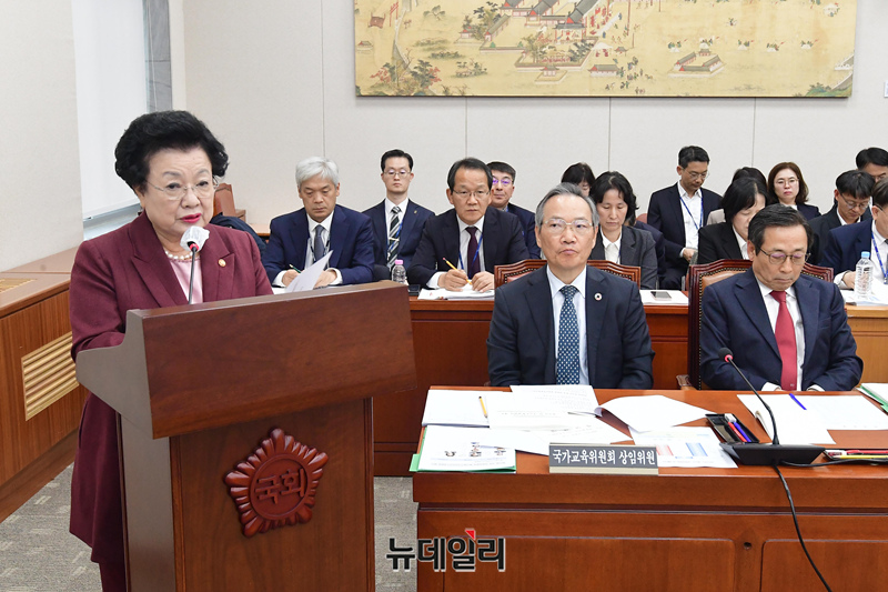 이배용 국가교육위원장이 5일 국회에서 열린 교육위원회 전체회의에 출석해 예산안 및 기금운용계획안에 대한 제안설명을 하고 있다.