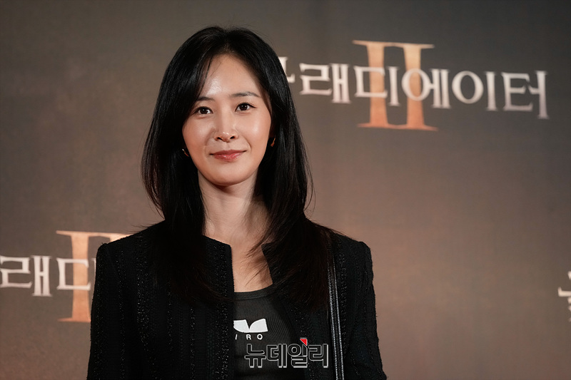 배우 유리가 5일 오후 서울 용산구 CGV 아이파크몰에서 열린 영화 '글래디에이터2' VIP 시사회에서 포즈를 취하고 있다.