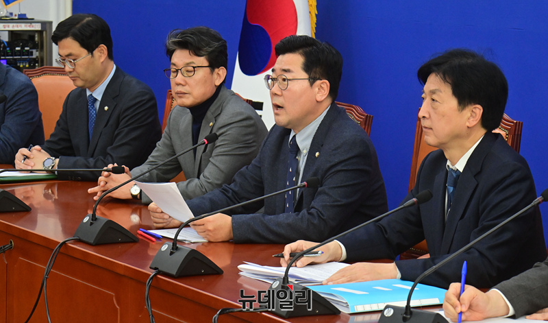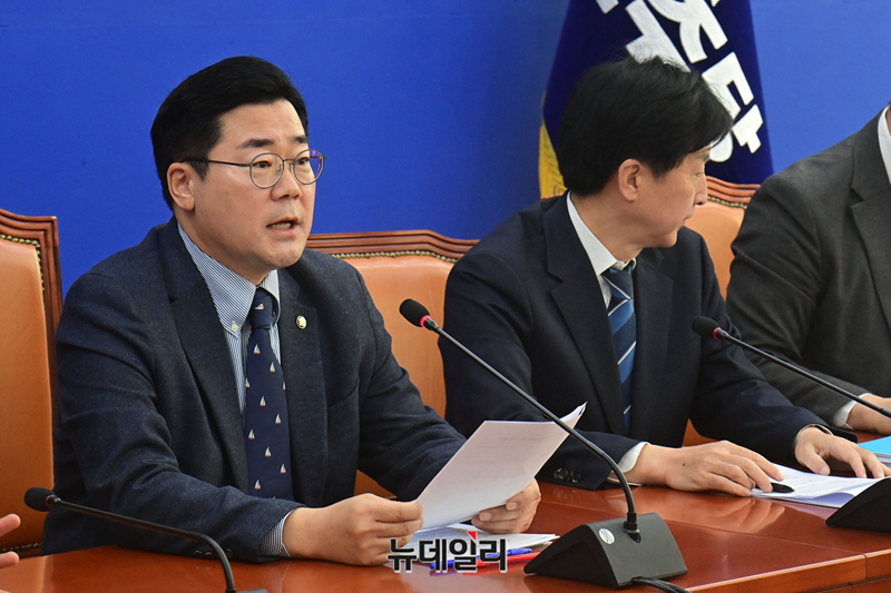 박찬대 더불어민주당 원내대표가 6일 국회에서 열린 대한민국 주식시장 활성화 TF 1차회의에서 인사말을 하고 있다.