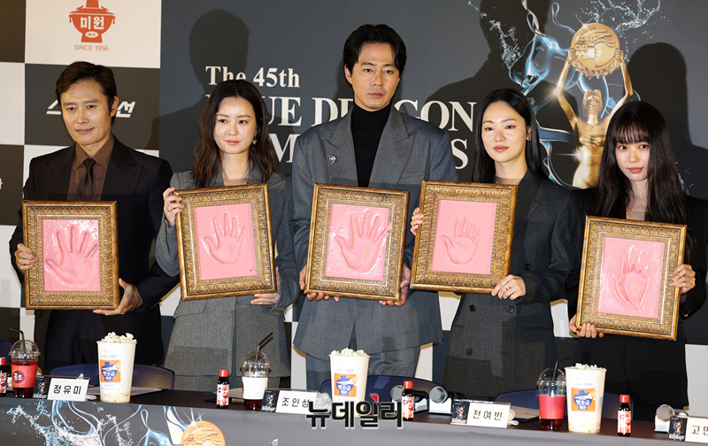 배우 고민시가 6일 오후 서울 CGV여의도에서 열린 청용영화상 핸드프린팅 행사에 참석해 프린팅을 선보이고 있다.