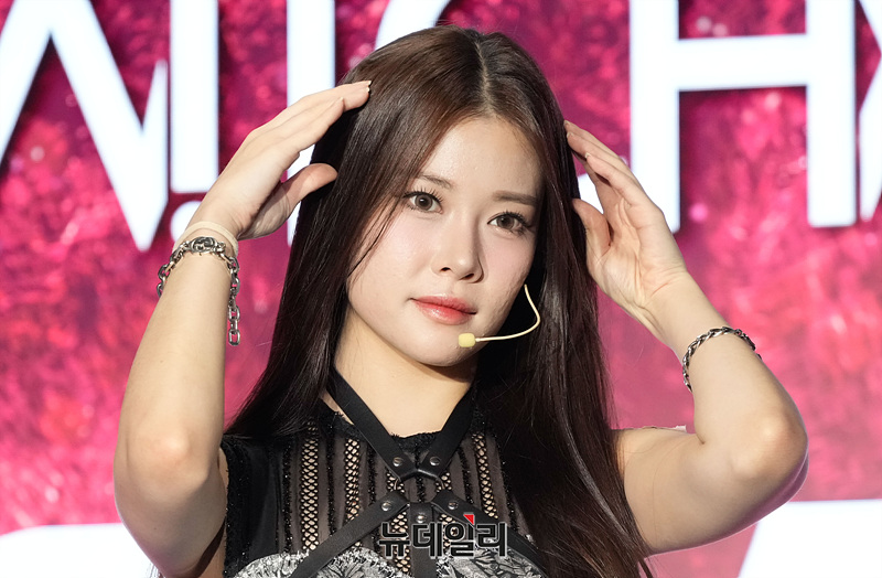 걸그룹 위치스(WITCHX) 마리가 7일 오후 서울시 마포구 ㅎㄷ빌딩 지하 공연장에서 열린 데뷔앨범 '블랄라(BLALA)' 발매 기념 미디어 쇼케이스에서 포즈를 취하고 있다.